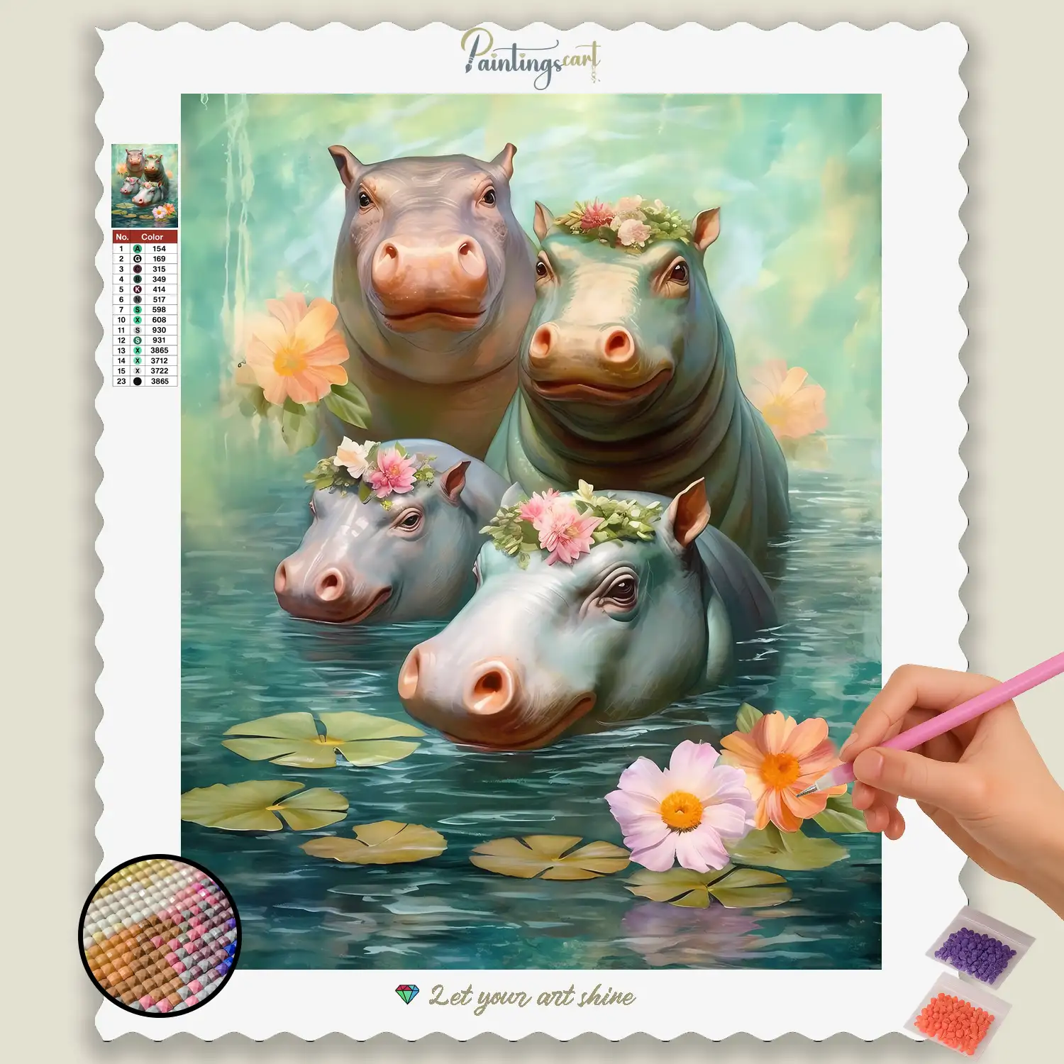 Discover the enchanting world of little giants with our heartwarming Diamond Painting “Baby Hippos in the Pond”! This delightful motif captures the playful innocence and lovable clumsiness of baby hippos as they frolic happily in a refreshing pond. Each glittering stone helps you bring their round shapes, curious eyes, and the vibrant freshness of the water and surrounding nature to life. It’s a tribute to the joy of life, the beauty of wild animals, and the pure cuteness these young giants exude. An ideal Diamond Painting for all animal lovers who long for carefree joy and a touch of exotic magic in their home.