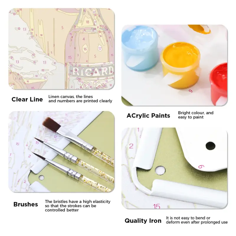 You will get all the tools and accessories required to complete your metal poster paint by numbers project in the kit.