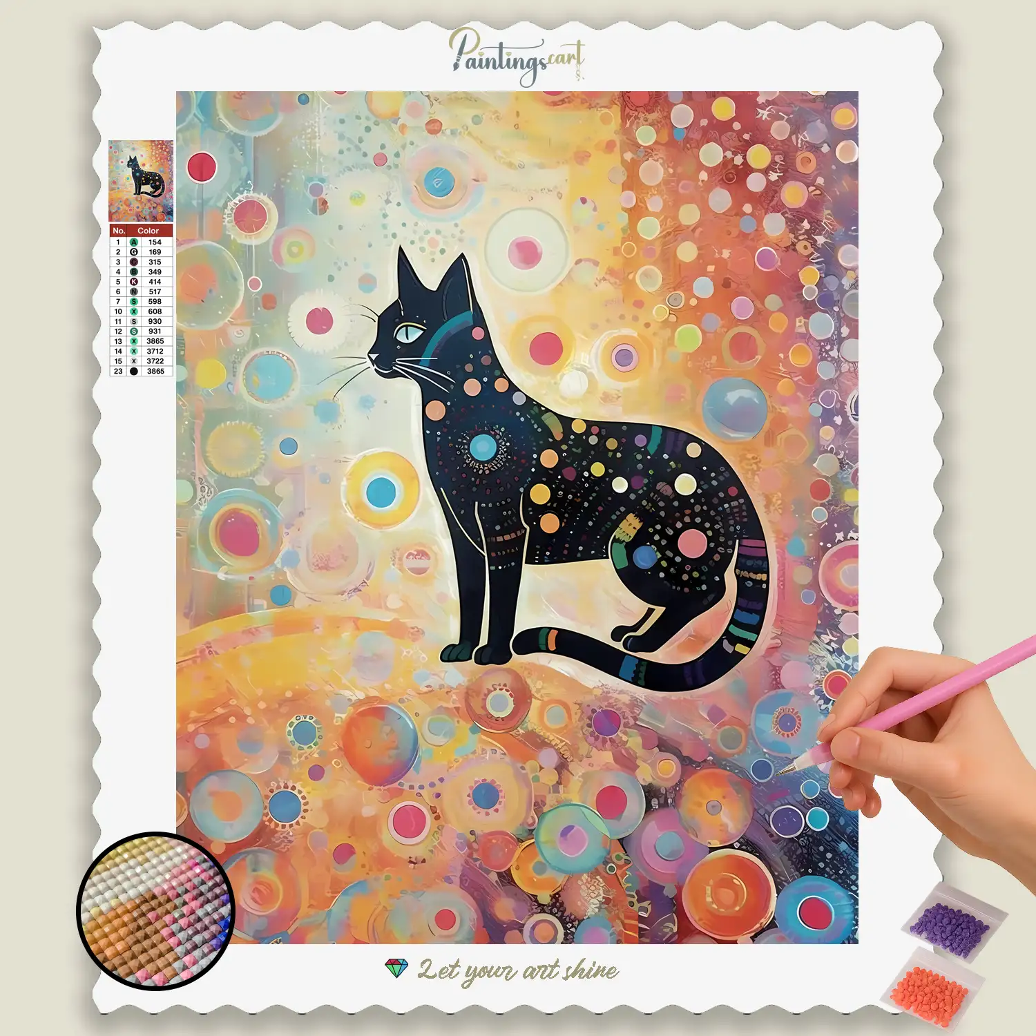 Discover mystical elegance in modern art with our fascinating “Abstract Black Cat” Diamond Painting! This unique motif captures the mysterious presence of a black cat, reinterpreted through abstract shapes, lines, and color accents. Whether it’s flowing silhouettes, cubist hints, or colorful accents that emphasize its eyes – each sparkling gem helps you bring the dynamic energy, deep symbolism, and artistic expressiveness of this work to life. It’s a tribute to the untamed beauty of these animals, to the freedom of art, and to the fascinating aesthetic that emerges when the familiar is reimagined. An ideal Diamond Painting for anyone who loves modern art, is inspired by elegance, and wants to bring a touch of creative expression into their home.