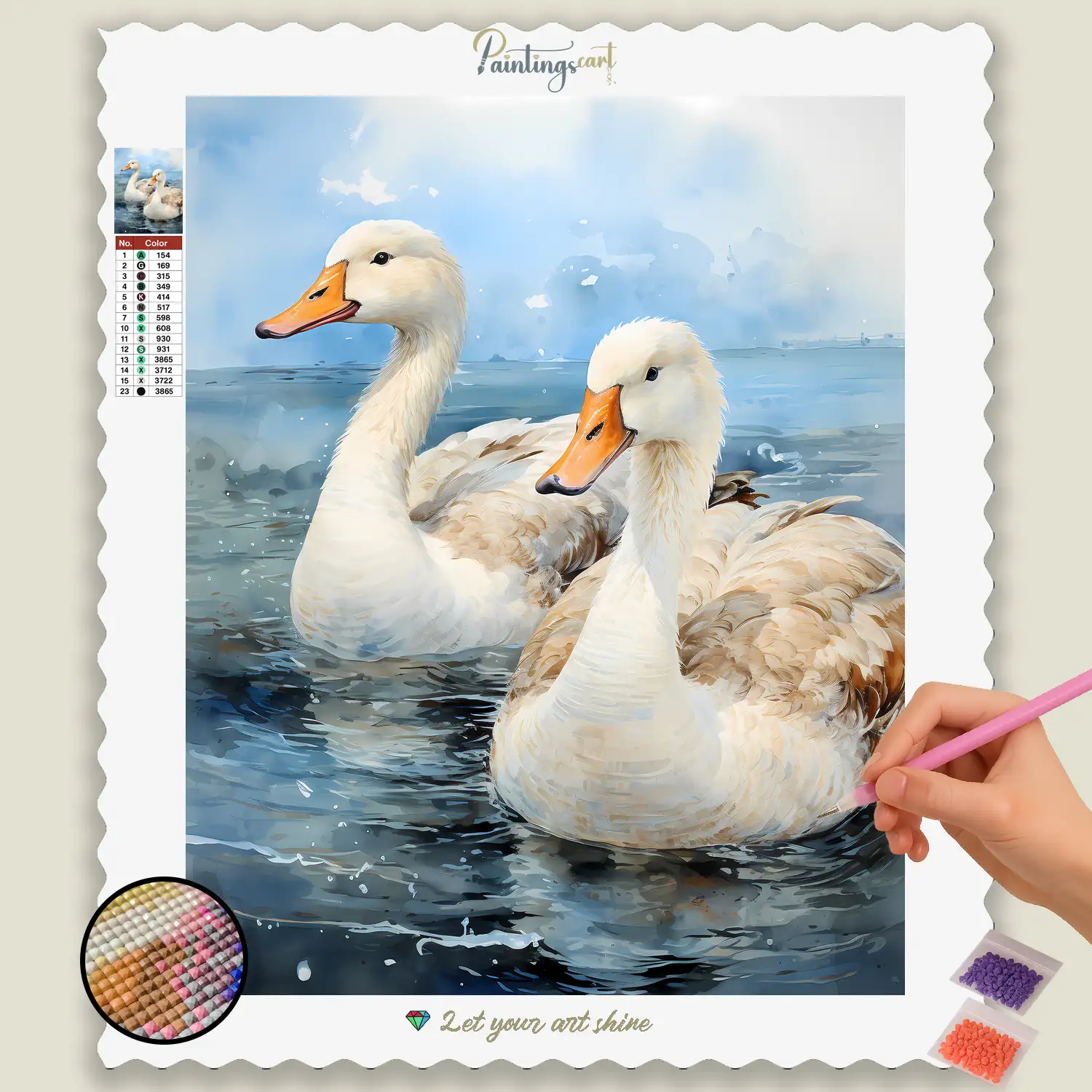 Experience the breathtaking grace of nature with our enchanting “Amazing Swan Couple” Diamond Painting! This exquisite motif captures the unparalleled elegance and deep affection of two swans, forming a perfect unity with their graceful necks. Each sparkling gem helps you bring to life their immaculate white plumage, synchronized movements, and the majestic tranquility of the water they glide upon. It’s a tribute to unconditional love, the timeless beauty of birds, and the harmony found in true partnership. An ideal Diamond Painting for anyone longing for romance, a connection to nature, and a touch of sublime aesthetics in their home.