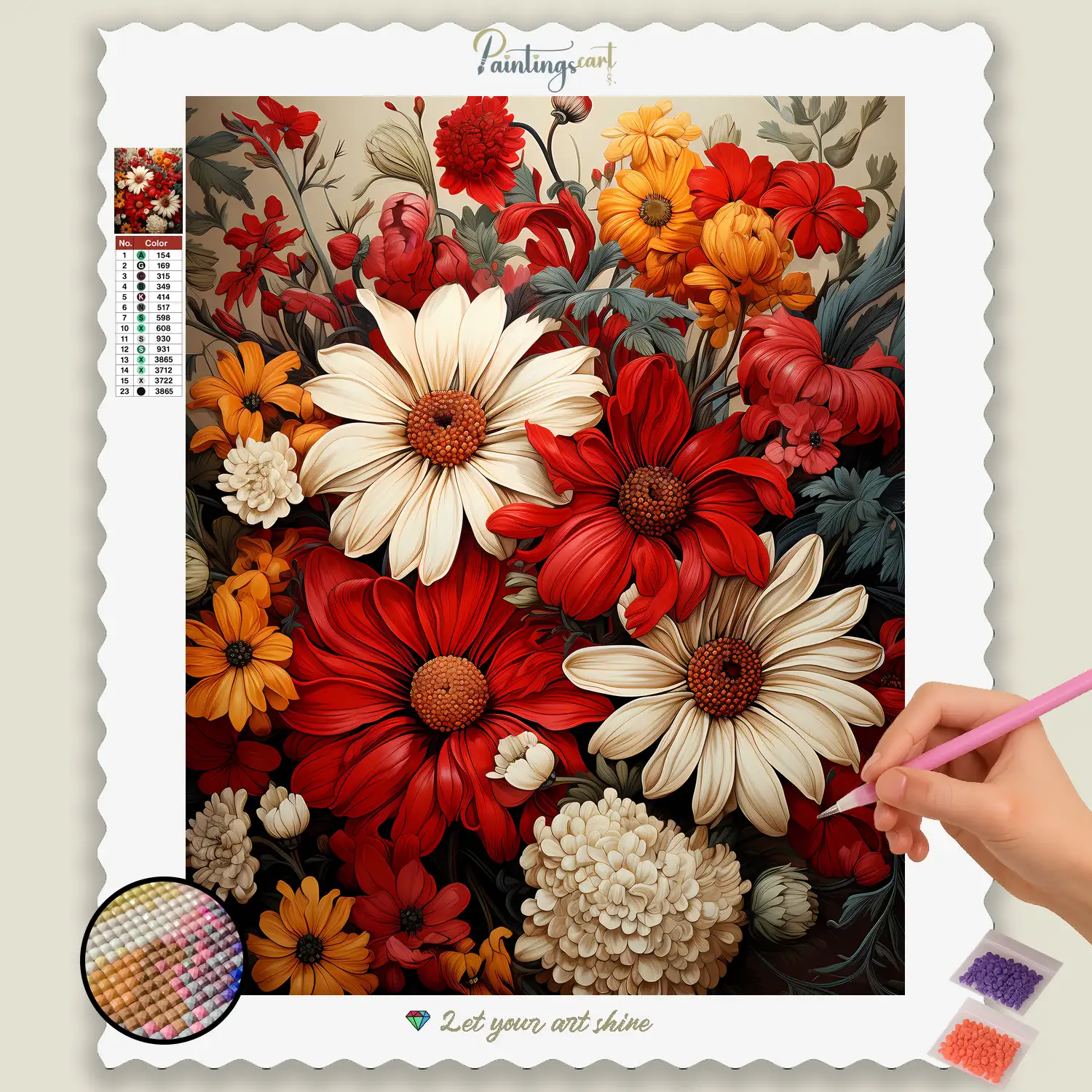 Bring the warm hues of autumn into your home with our enchanting “Autumnal Floral Splendor” Diamond Painting! This unique motif captures the rich and multifaceted beauty of flowers that flourish in the abundance of autumn. Imagine deep reds, vibrant golds, and earthy browns reflecting the gentle melancholy and bountiful harvest of this season. Each shimmering gem helps you bring to life the delicate petals, distinctive shapes, and cozy atmosphere that autumn brings. It’s a tribute to the gifts of nature, to the colorful splendor of transformation, and to the timeless elegance that nature reveals in autumn. An ideal Diamond Painting for anyone who loves seasonal decorations and wants to add a touch of warmth and natural flair to their home.