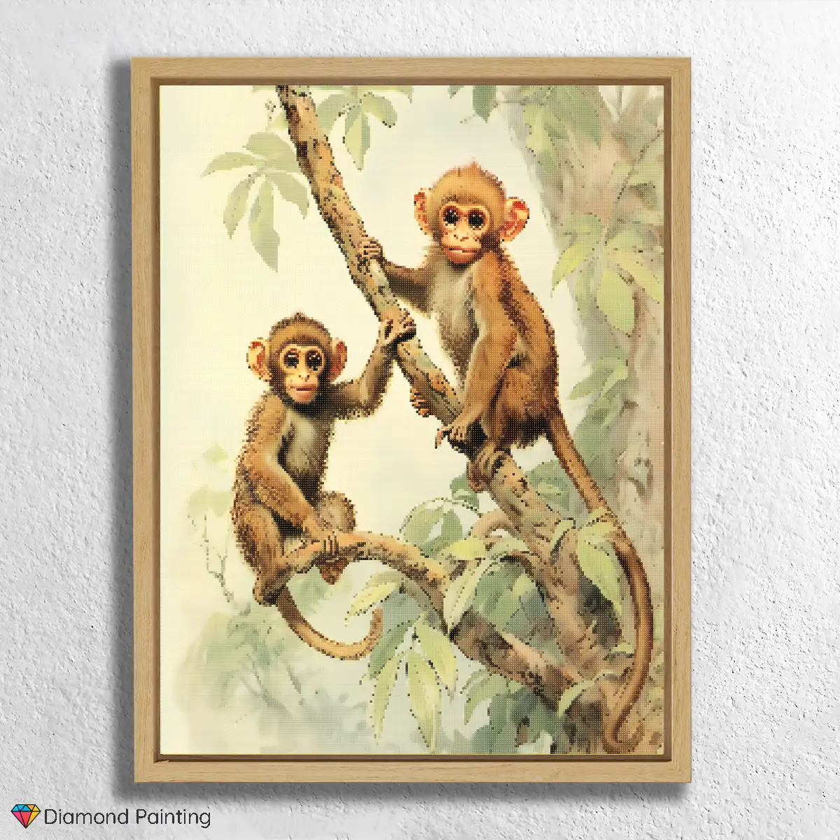 Watch the lively antics of these little climbing artists with our enchanting Diamond Painting “Baby Monkeys on Branch”! This heartwarming motif captures the playful curiosity and lovable agility of several baby monkeys as they safely frolic on a thick branch in their tropical home. Each glittering stone helps you bring their soft fur, expressive faces, and the vibrant energy of their natural environment to life. It’s a tribute to the joy these clever animals bring into our lives and the beauty of untouched wilderness. An ideal Diamond Painting for all animal lovers who long for cuteness and a touch of exotic magic in their home.