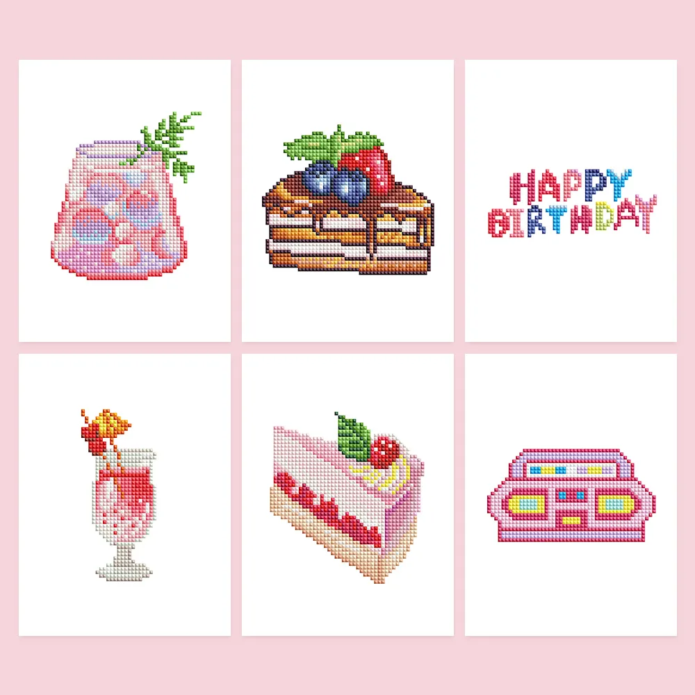 Say “Happy Birthday” in the most creative way with our 6-pack “Birthday Greetings Collection”! This set from our Mini Diamond Paintings range is the perfect solution for unique, handmade birthday cards or gift tags. In this pack, you’ll find six different, cheerful birthday designs – for example, a colorful cake with candles, festive balloons, a pretty gift box, and the “Happy Birthday” lettering.
