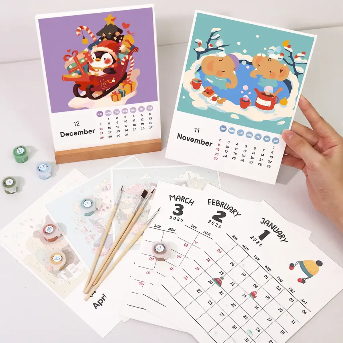 The 2025 calendar is similar to any paint by numbers project. If you are familiar with paint by number you can quickly complete the calendar. If you are unfamiliar with DIY painting by number then you can follow these simple steps