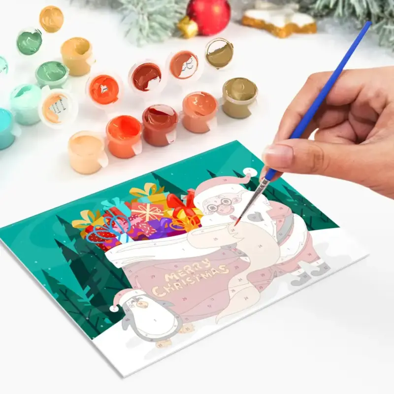 These Christmas cards are similar to any paint by numbers project. You can quickly complete the calendar if you are familiar with paint by number. If you are unfamiliar with DIY painting by number, then you can follow these simple steps.