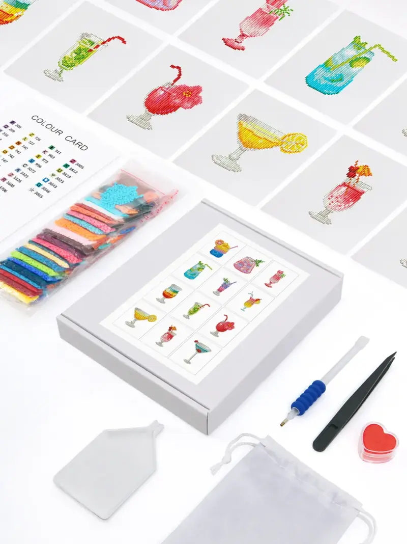 Cheers to creativity! With our 12-piece “Cocktail Party Collection” set, you bring the cheerful atmosphere of a bar right into your home. This set, a highlight of our series for quick, creative projects, features twelve different, colorful drink motifs. From sparkling cocktails with fruit garnishes to iced coffee and refreshing lemonades – each of these pictures radiates joy and is an homage to life’s beautiful moments of indulgence.