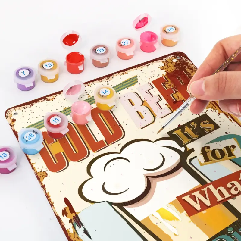You will get all the tools and accessories required to complete your metal poster paint by numbers project in the kit.