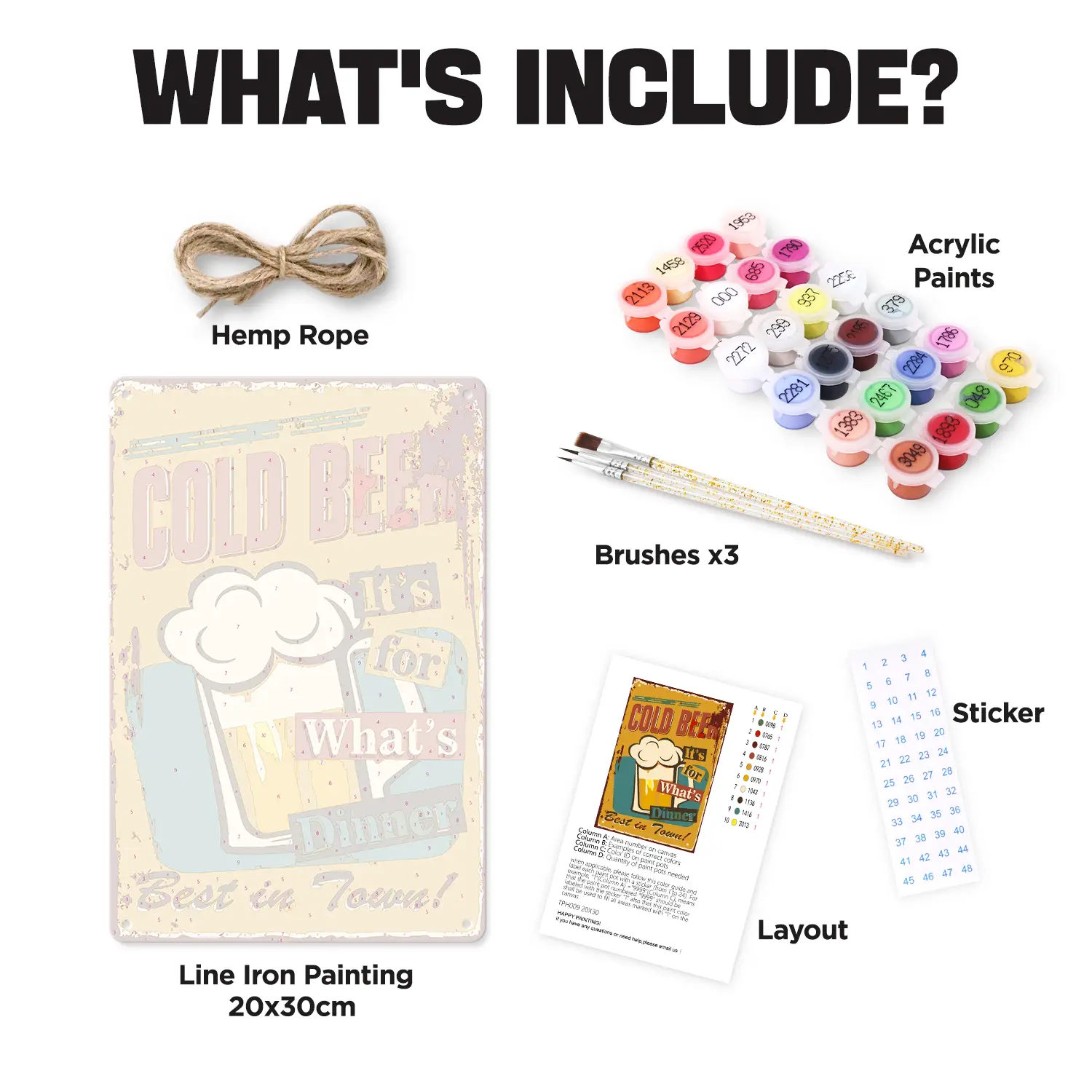 Elevate your bar or home decor with the Cold Beer Best in Town DIY Metal Poster. This vintage-style poster measures 20x30cm (7.8×11.8 inches) and features rounded corners for a unique look. Made from durable metal, it adds a touch of nostalgia to any space. Perfect for beer enthusiasts, this DIY paint-by-numbers poster allows you to personalize it with vibrant colors, making it a fun and creative activity. Its compact size fits well in small areas, creating a cozy ambiance that invites conversation.