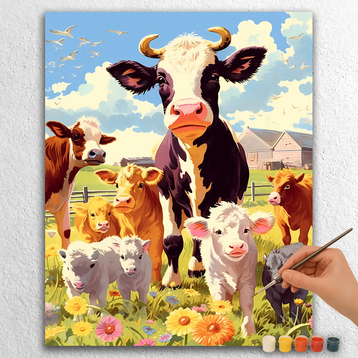 Bring the countryside to life with Cows in Farm, a delightful paint by numbers kit. This charming scene features cows grazing peacefully in a lush farm setting. Perfect for beginners or experienced artists, it offers a relaxing creative experience. The kit includes pre-printed canvas, paints, brushes, allowing you to unwind while creating a beautiful piece of art. It makes a great gift for anyone who loves nature or painting.