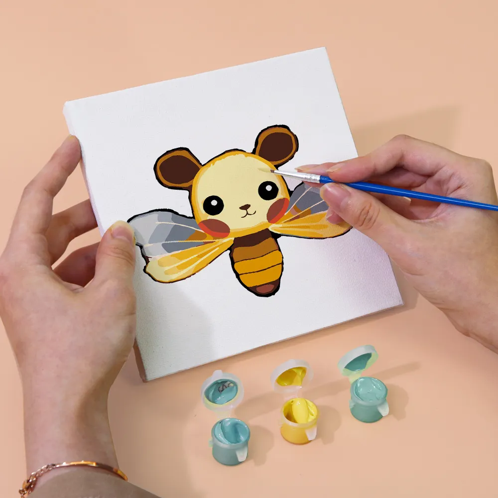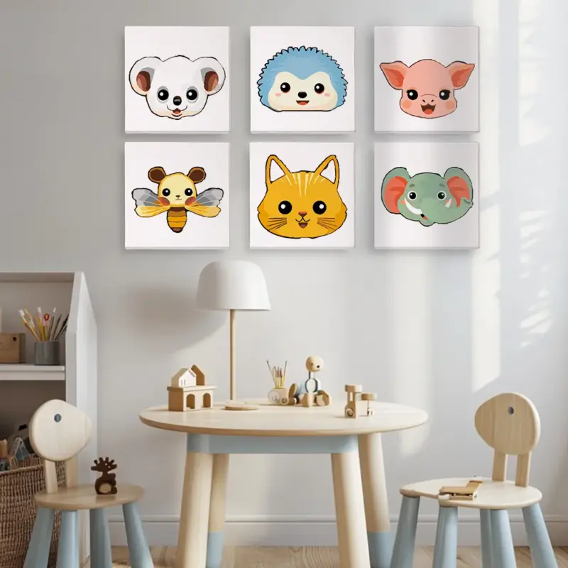 The “Cute Animal Faces” Mini Paint-by-Numbers set brings the cutest facial expressions directly to the canvas. Whether smiling dogs, cheeky cats, or curious bunnies – this set delights children and animal lovers with its charming style. Ideal for creative hours, child-friendly decoration, or as a sweet gift. The pre-printed mini canvas, vibrant acrylic paints, and the included brush ensure easy and joyful painting fun – also suitable for beginners.