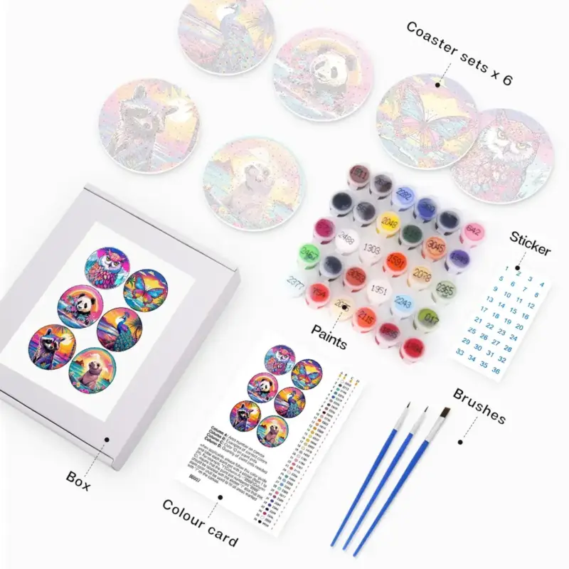 Cute Animals and Birds DIY Coaster – Paint by Numbers