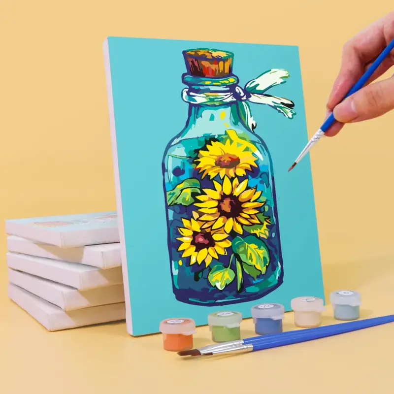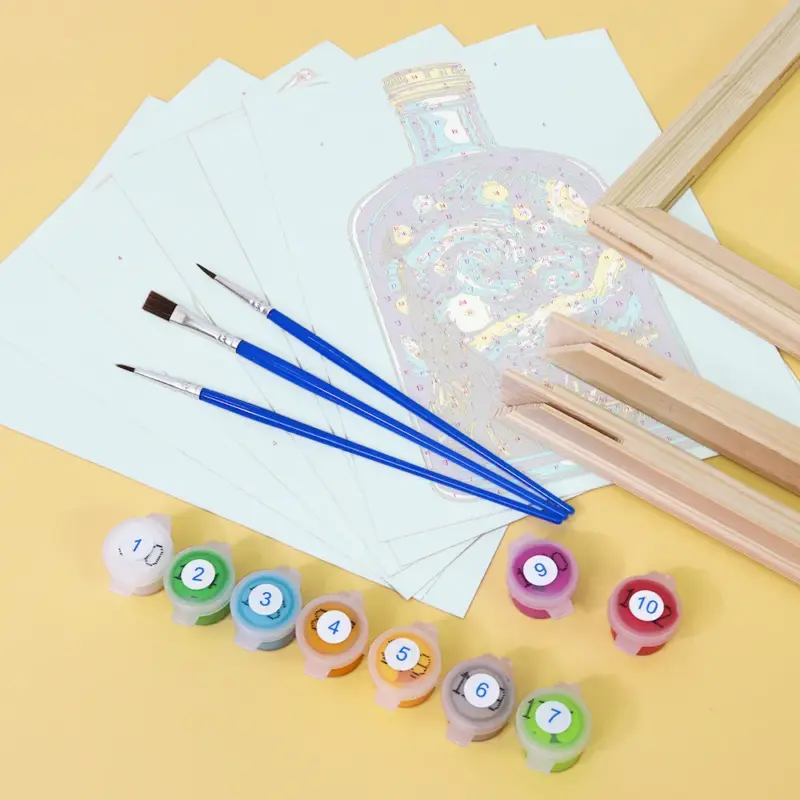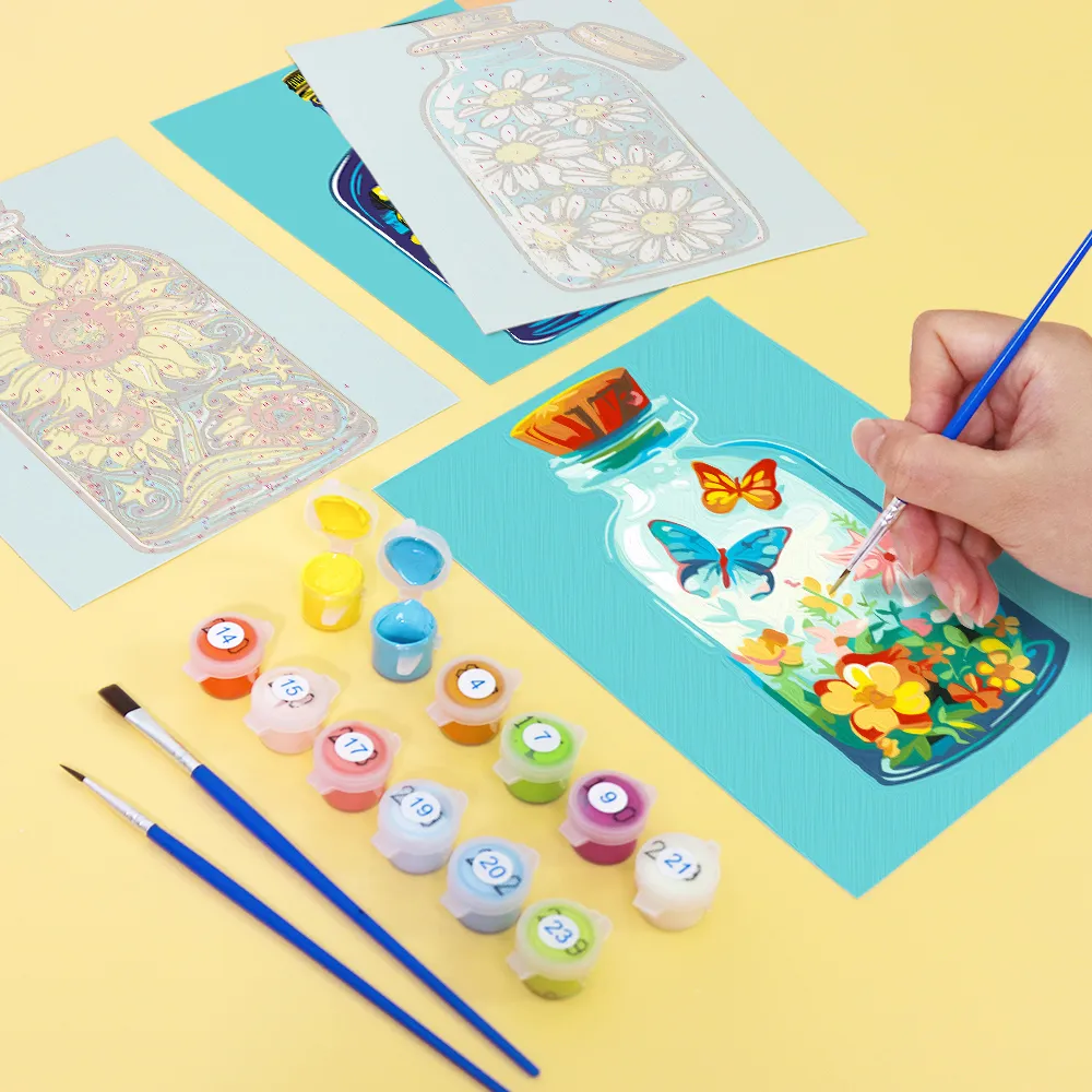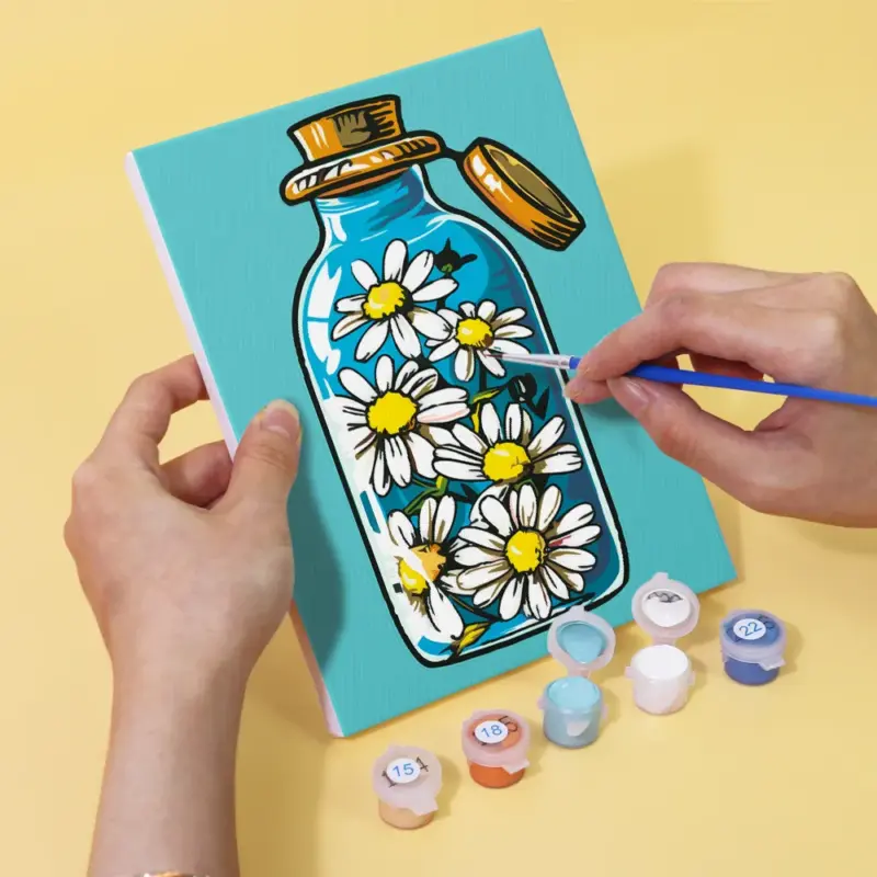 The “Designer Bottles” Mini Paint by Numbers set combines elegance with creativity. Whether perfume bottles, fine beverage bottles, or artfully designed containers – this motif is a real eye-catcher for design lovers. Ideal for stylish decoration, creative gifts, or as a relaxing DIY project. The pre-printed mini canvas, high-quality acrylic paints, and a fine brush enable an easy but expressive painting experience.