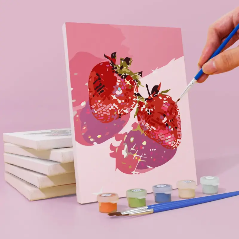 The “Exotic Fruits” Mini Paint by Numbers set brings tropical freshness and vibrant colors to your canvas. Whether pineapple, papaya, dragon fruit, or kiwi – this motif is a colorful feast for all the senses. Ideal for creative breaks, summery decoration, or as a gift for fruit lovers. The set includes a pre-printed mini canvas, bright acrylic paints, and a brush – perfect for beginners, children, or anyone who feels like adding some color.