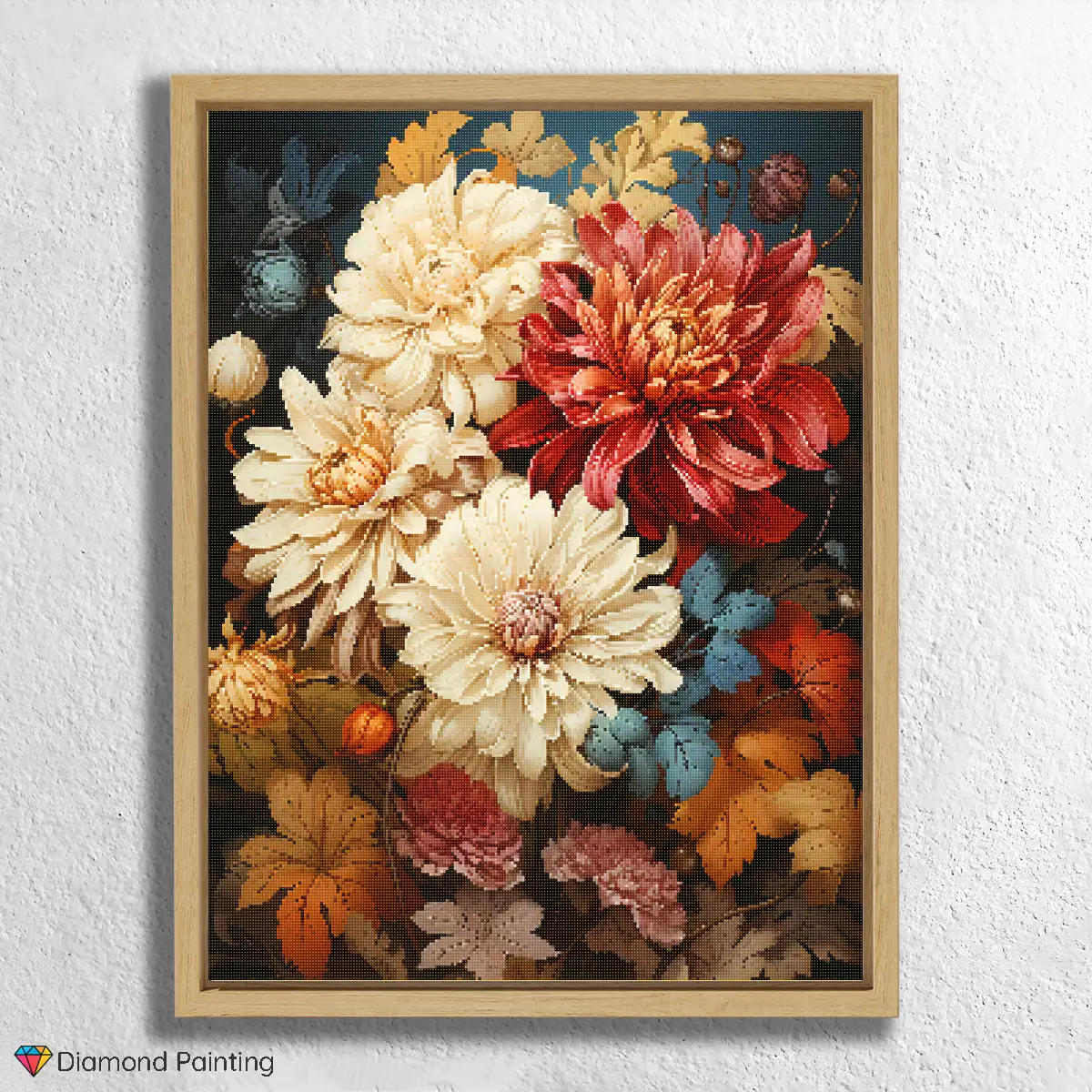 Celebrate the rich harvest season with our magnificent Diamond Painting “Fall Floral Splendor”! This impressive motif captures the full opulence and the deep, rich hues of the flowers that put on their last glorious show in fall. Imagine dahlias, chrysanthemums, and sunflowers in golden yellow, deep red, and warm orange tones, creating an atmosphere of abundance and coziness. Every glittering bead helps you bring to life the complex floral structures, vibrant color transitions, and the mature beauty of this season. It is a tribute to the generosity of nature, the festive spirit of harvest, and the unparalleled elegance that fall reveals in its full bloom. An ideal Diamond Painting for anyone who loves seasonal decorations and wants to bring a touch of rich, natural beauty into their home.