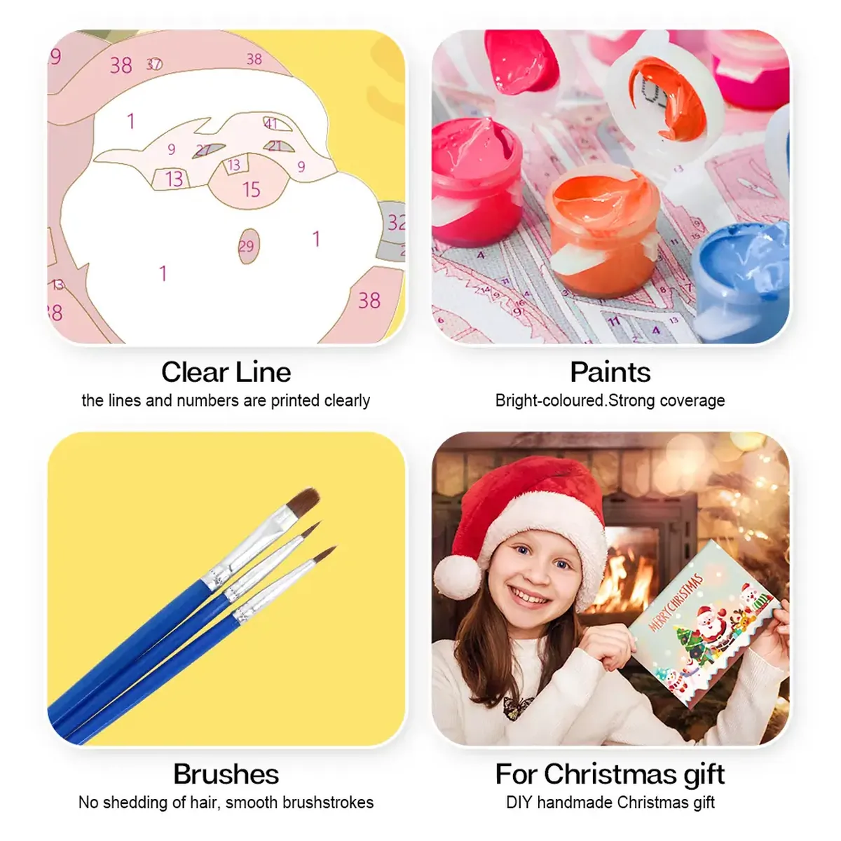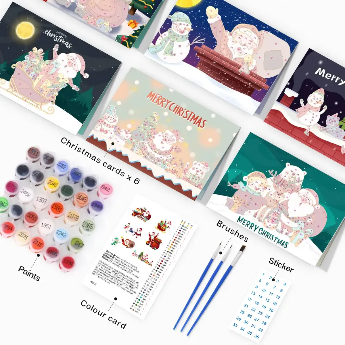 You will get all the accessories required to complete your paint-by-numbers Christmas Cards. You will get the following tools and accessories –
