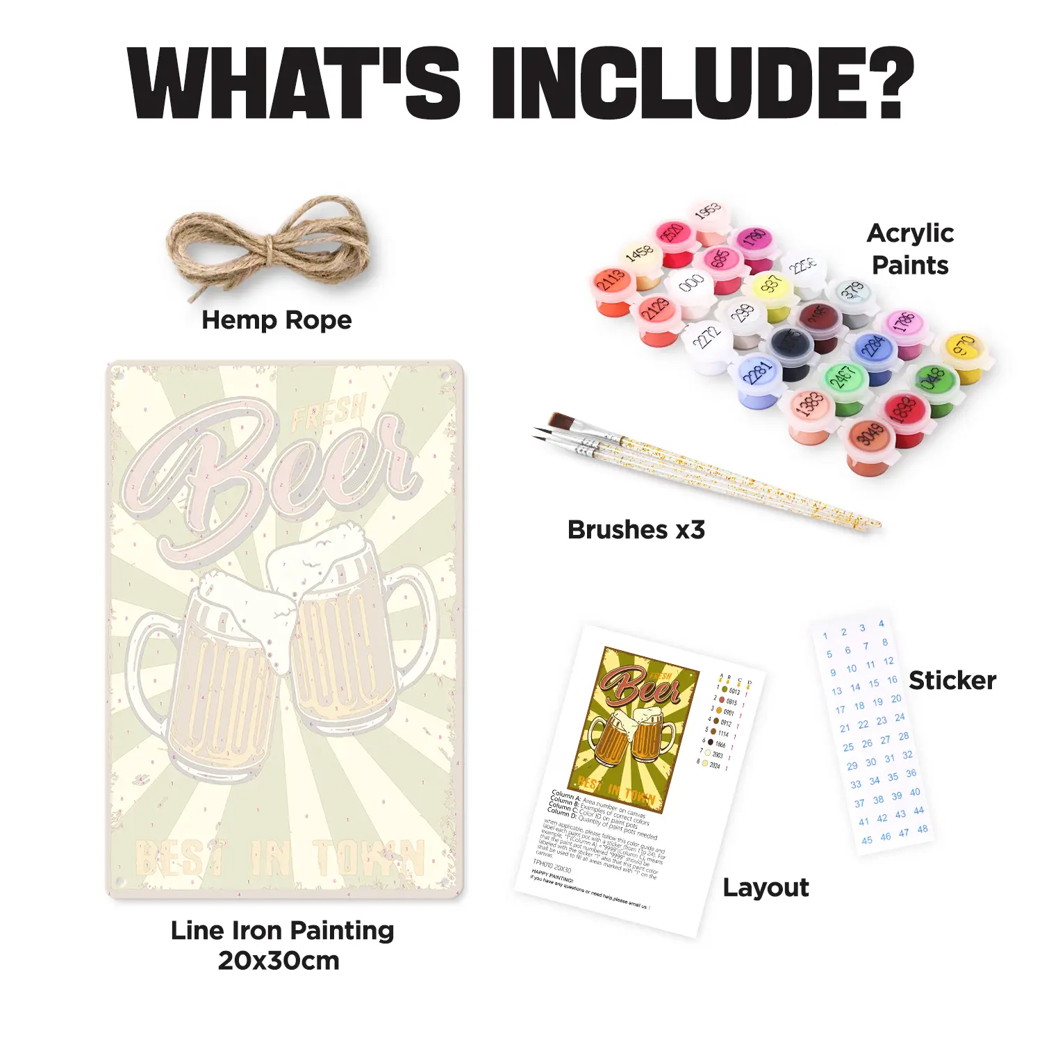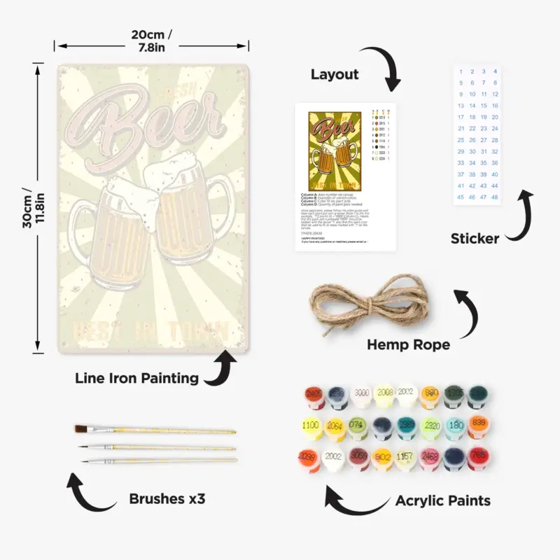 Experience the charm of vintage with the Fresh Beer Best in Town DIY Paint by Numbers metal poster. Sized at 20x30cm or 7.8×11.8 inches, this round-edged poster adds a unique touch to any space. Perfect for bar or home decor, it combines nostalgia with creativity. The paint-by-numbers design allows you to personalize it, making it a fun and engaging activity. Its vintage style will transport you back in time, while the metal finish gives it a modern twist.