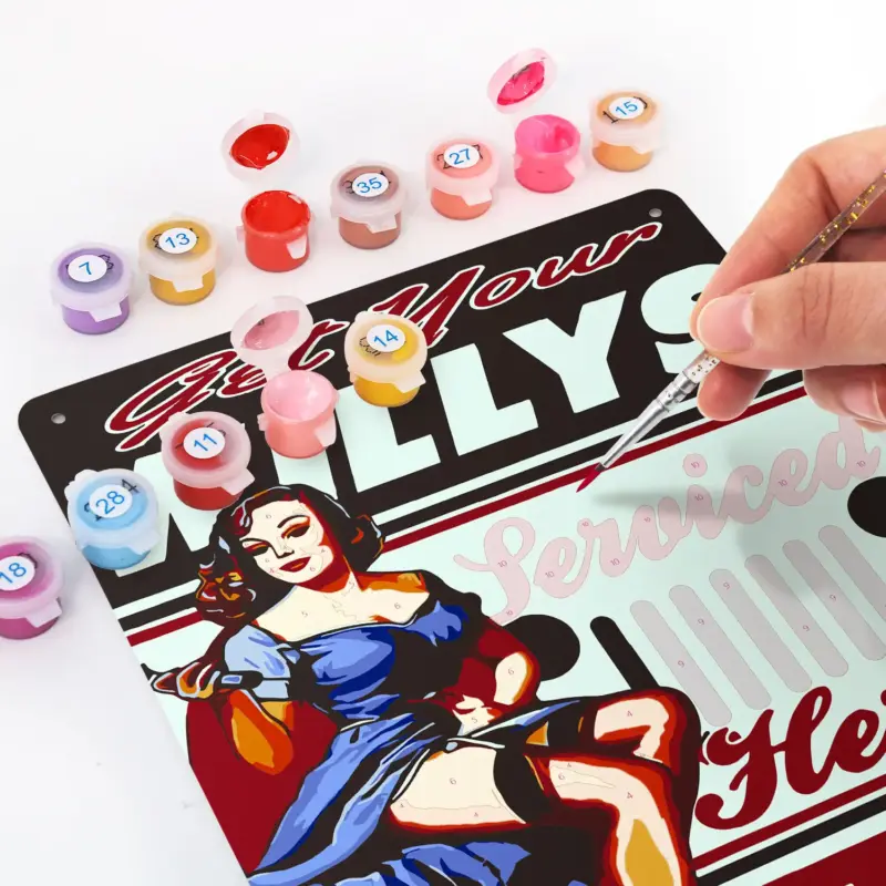 You will get all the tools and accessories required to complete your metal poster paint by numbers project in the kit.