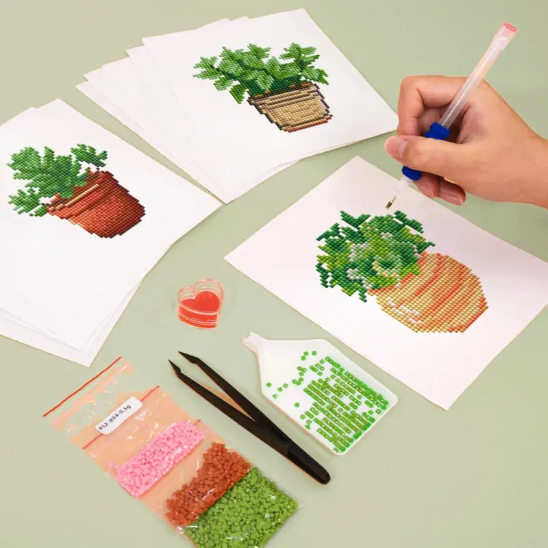 Create your own evergreen windowsill with our 12-piece “Green Home Collection” set! This set from our Mini Diamond Paintings series is a tribute to the most popular houseplants that make our homes cozier. In this package, you’ll find twelve different motifs of stylish plants in decorative pots – from cacti and fiddle-leaf figs to UFO plants and snake plants.