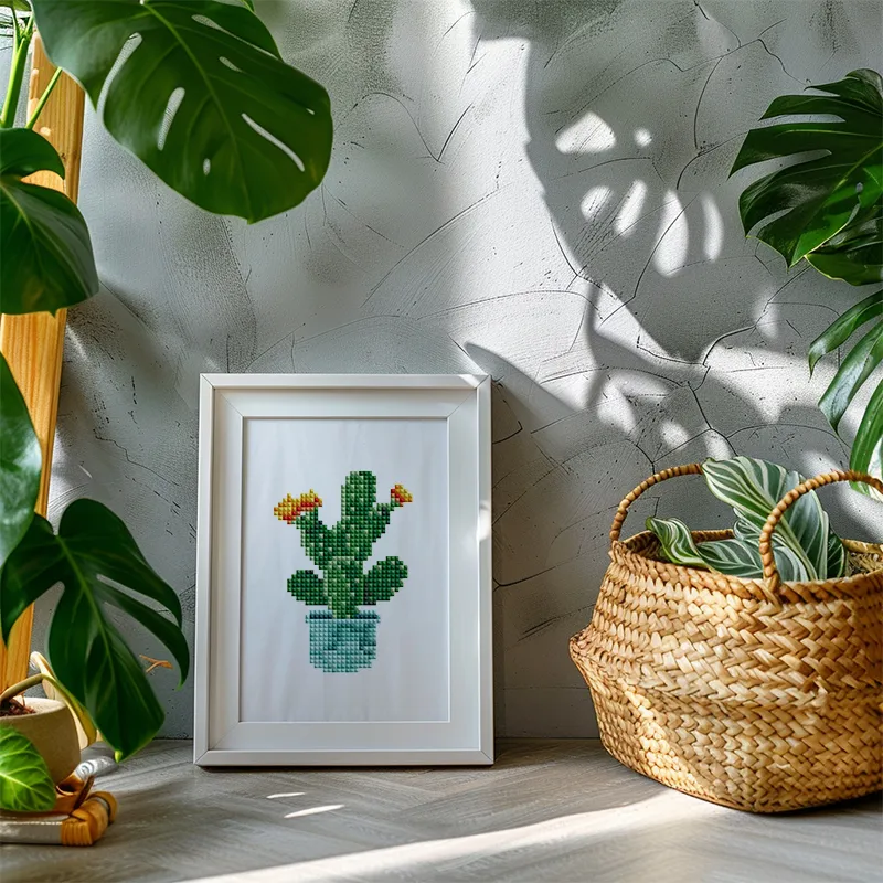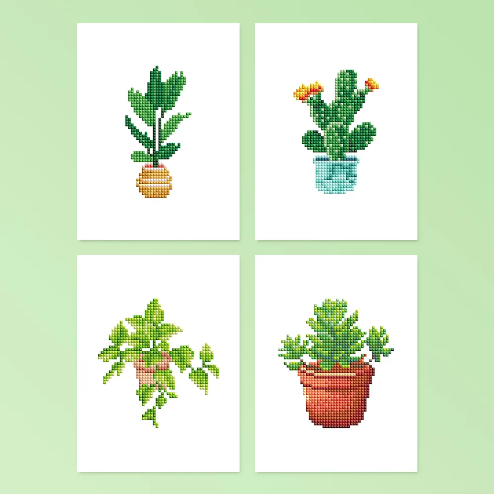Bring an oasis of calm into your home with our 4-piece “Urban Jungle Quartet” set! This set is part of our popular Mini Diamond Paintings collection and perfect for anyone who loves modern botanical decoration. In this pack, you’ll find four stylish motifs of trendy houseplants – for example, an elegant Monstera leaf, an easy-care succulent, a hanging ivy, and a fashionable Pilea.
