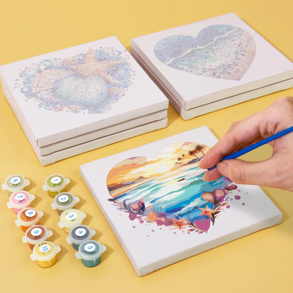 The “Heart and Nature” Mini Paint-by-Numbers set combines symbolic love with the beauty of nature. Floral patterns, leaves, and a central heart motif create a harmonious overall picture full of warmth and tranquility. The compact format is ideal for creative breaks, small gifts, or as a relaxing activity for beginners. Included is a pre-printed mini canvas, matching acrylic paints, and a brush – everything you need for your little work of art.