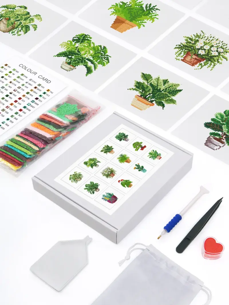 Create your own evergreen windowsill with our 12-piece “Lush Living Collection” set! This set from our Mini Diamond Paintings range is a tribute to the most beloved houseplants that make our homes cozier. In this package, you’ll find twelve different designs of stylish plants in decorative pots – from cacti and fiddle-leaf figs to UFO plants and snake plants.