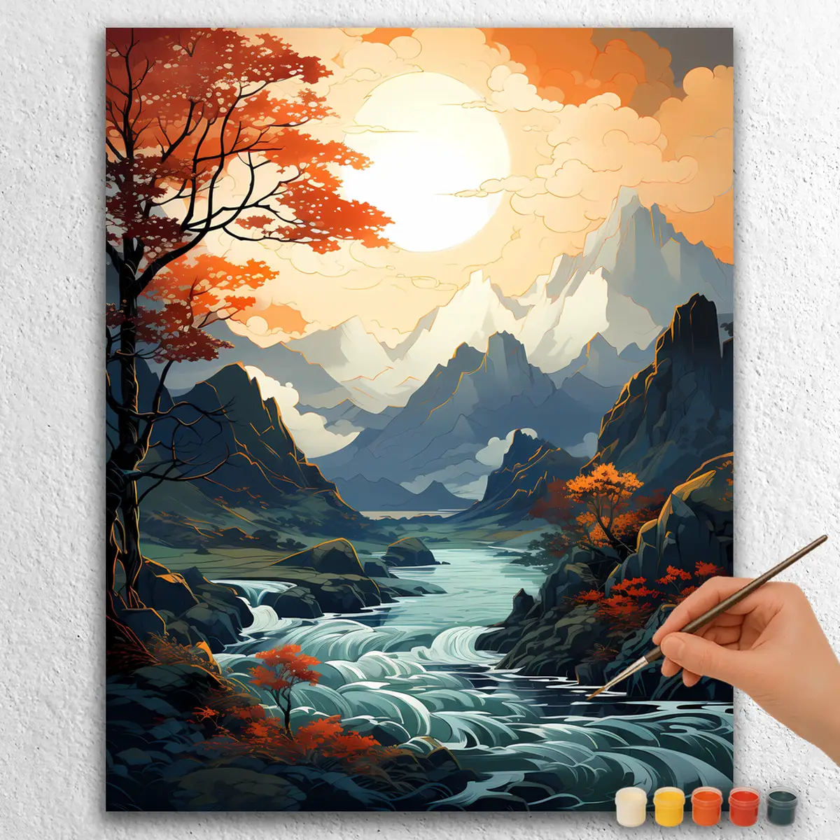 “Mountains in Alaska” is a serene paint-by-numbers kit, capturing the breathtaking beauty of Alaska’s majestic mountains. This DIY art piece allows you to bring the tranquility of nature into your home with vibrant colors and soothing landscapes.