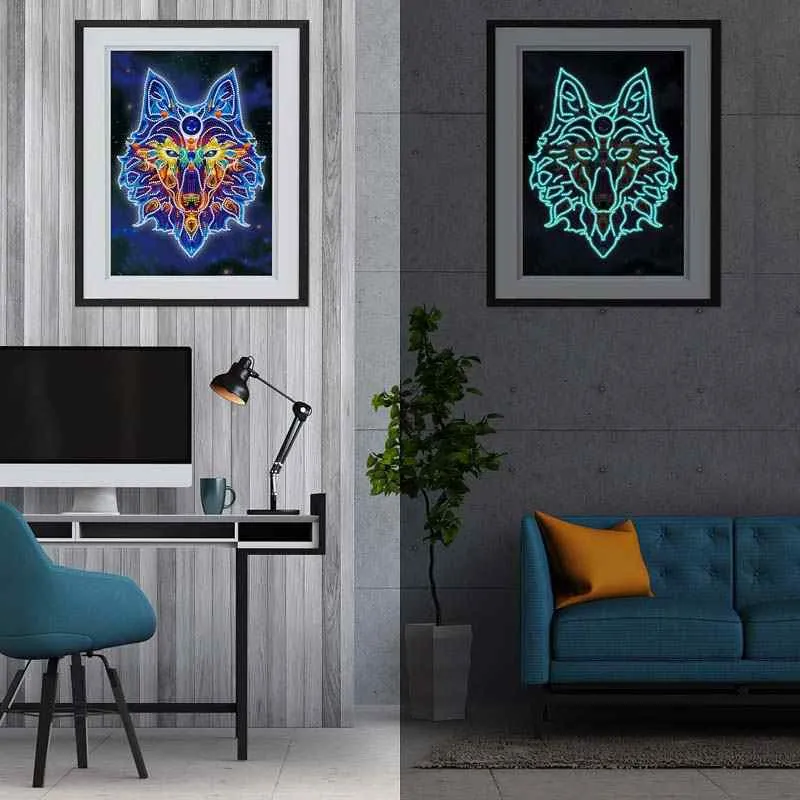 Feel the call of the wild with our “Mystic Glow Wolf” Diamond Painting! This artwork captures the untamed soul and mysterious presence of the wolf. During the day, the motif captivates with a detailed portrait of a majestic wolf. But at night, its magical side awakens: special luminous stones in the eyes, contours, and perhaps the moon in the background charge up in the light and begin to softly glimmer in the dark.