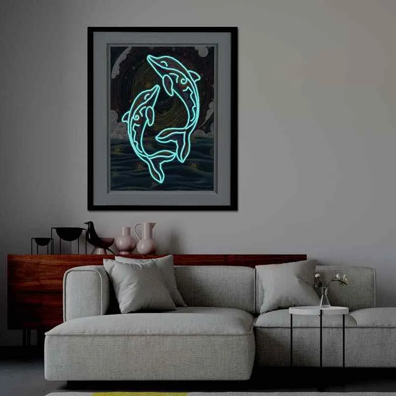 Immerse yourself in the deep blue expanse of the ocean with our ‘Ocean Giant’ Diamond Painting! This design captures the impressive yet gentle nature of a playing whale, majestically gliding through the water. Surrounded by smaller sea creatures and light reflections, this image radiates a deep tranquility and the endless freedom of the sea. Every sparkling diamond helps you bring the magnificent form of the whale and the vibrant blue tones of the water to life.