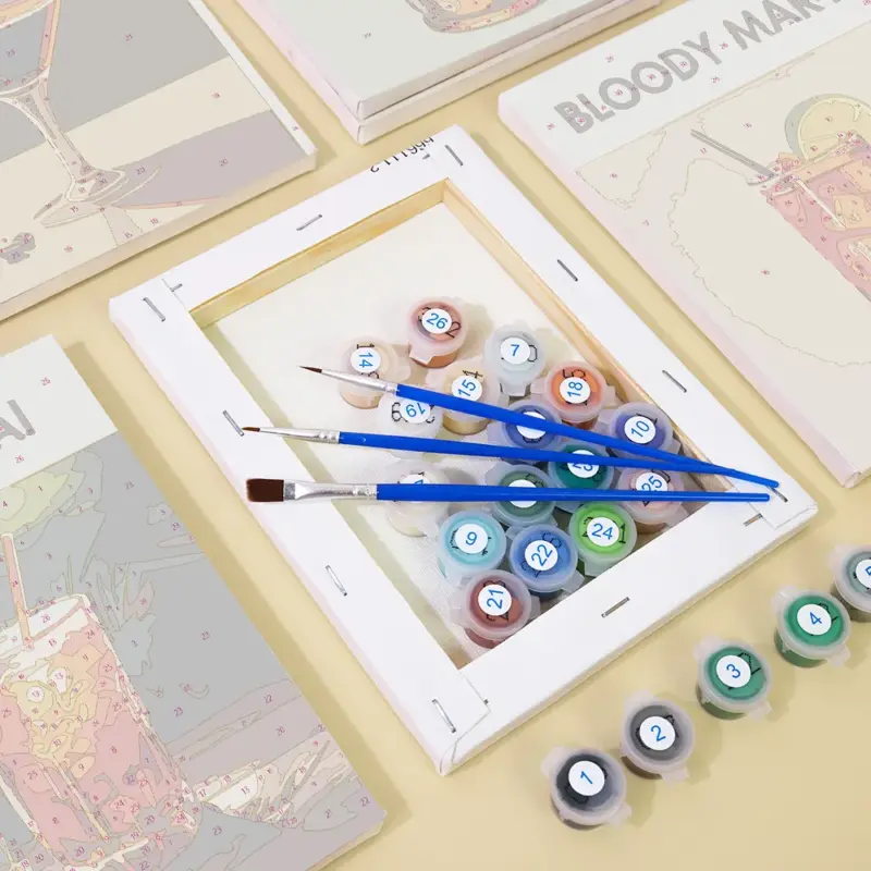 The “Refreshing Drinks” Mini Paint by Numbers set brings sparkling summer joy to the canvas. Whether with citrus fruits, ice cubes, or colorful glasses – this motif is ideal for warm days and good spirits. Thanks to its compact format, the set is perfect for beginners, creative breaks, or as a small gift. With a pre-printed mini canvas, brilliant acrylic paints, and matching brushes, the small work of art is easy to create in a relaxed manner.