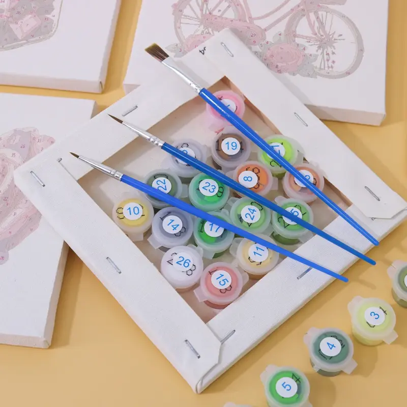 - Includes canvas, paints & brush