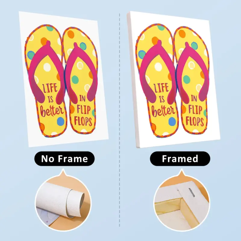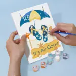 The “Summery Flip-Flops” Mini Paint by Numbers set brings sunny beach moments directly to your canvas. Colorful flip-flops in the sand, accompanied by shells or ocean waves, exude a real vacation atmosphere and summer joy. The compact set is ideal for creative breaks, small gifts, or as a DIY reminder of your last beach vacation. The pre-printed mini canvas, the bright acrylic paints, and the fine brush make painting easy and relaxing – perfect for beginners.