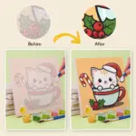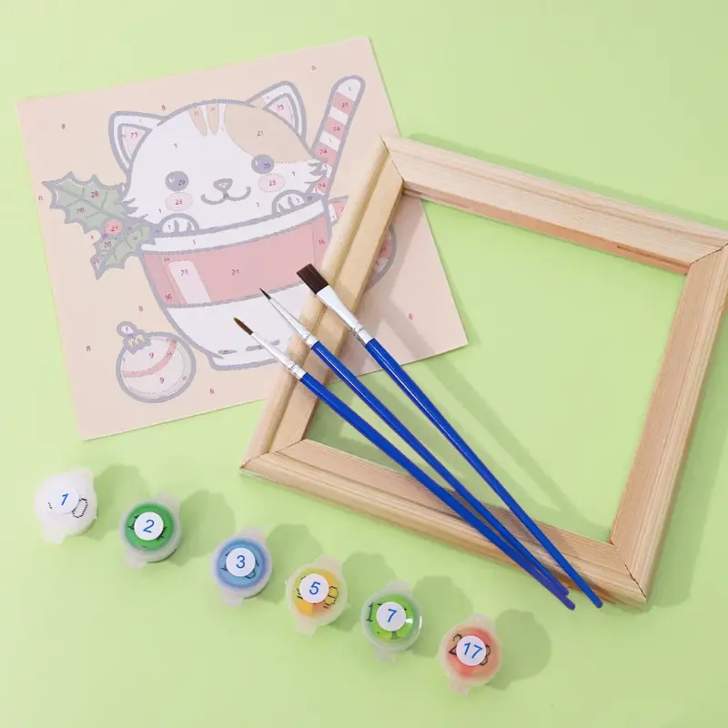 The “Sweet Kitten” Mini Paint by Numbers set features an enchanting kitten design with large eyes and fluffy fur – perfect for all animal lovers and cat enthusiasts. The loving details make painting a relaxing and heartwarming experience. The compact set is ideal for beginners, children, or as a small gift. With a pre-printed mini canvas, vibrant acrylic paints, and a brush, the sweet kitten can be brought to life with ease.