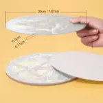 The placemats have a diameter of 20 cm/7.87 inches and a thickness of around 0.3 cm/ 0.11 inches.