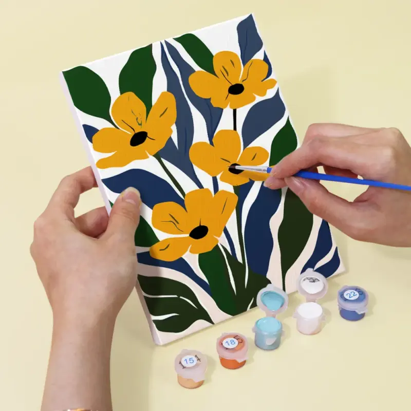 Bring exotic flair and colorful floral diversity to your canvas with the “Tropical Flowers” Mini Paint by Numbers set. Vibrant hibiscus blossoms, palm leaves, and tropical colors bring pure vacation vibes to your home. This compact DIY set is ideal for creative breaks, summer gifts, or simply unwinding. The pre-printed mini canvas, brilliant acrylic paints, and included brush make painting easy and relaxing – even for beginners.
