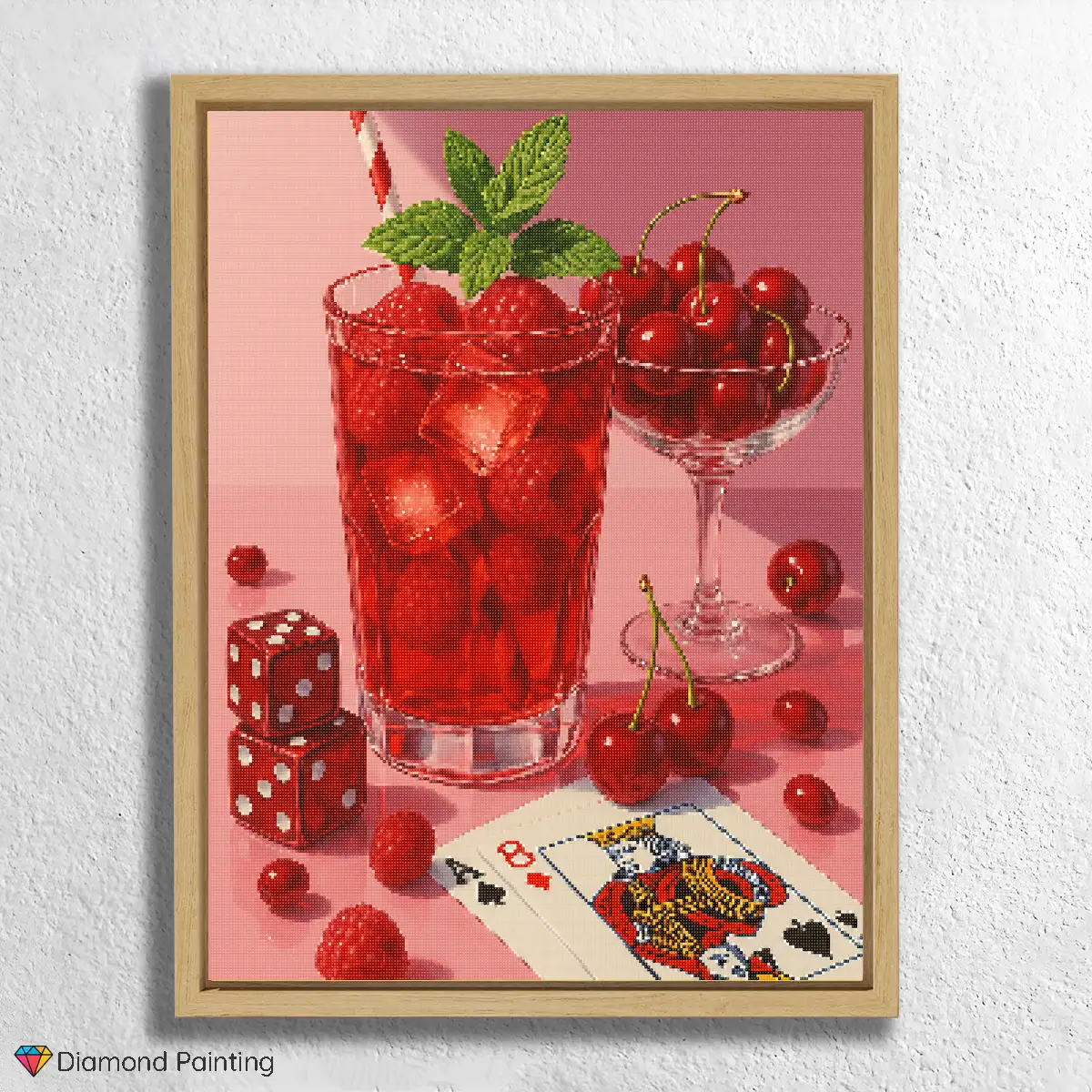 Capture the sparkling sweetness of summer with our radiant Diamond Painting “Vibrant Cocktail and Cherry Still Life”! This appetizing motif captures the essence of a tempting, vibrant cocktail, perfectly harmonizing with an arrangement of juicy cherries. Imagine the glossy surfaces of the cherries, the bright color of the drink, and the cool freshness it promises. Each sparkling gem helps you create the delicate textures of the fruit, the shimmering liquids in the glass, and the inviting atmosphere reminiscent of a perfect, carefree summer day. It’s a tribute to the gifts of nature, to healthy refreshment, and to the pure joy that comes with indulging in these delights.