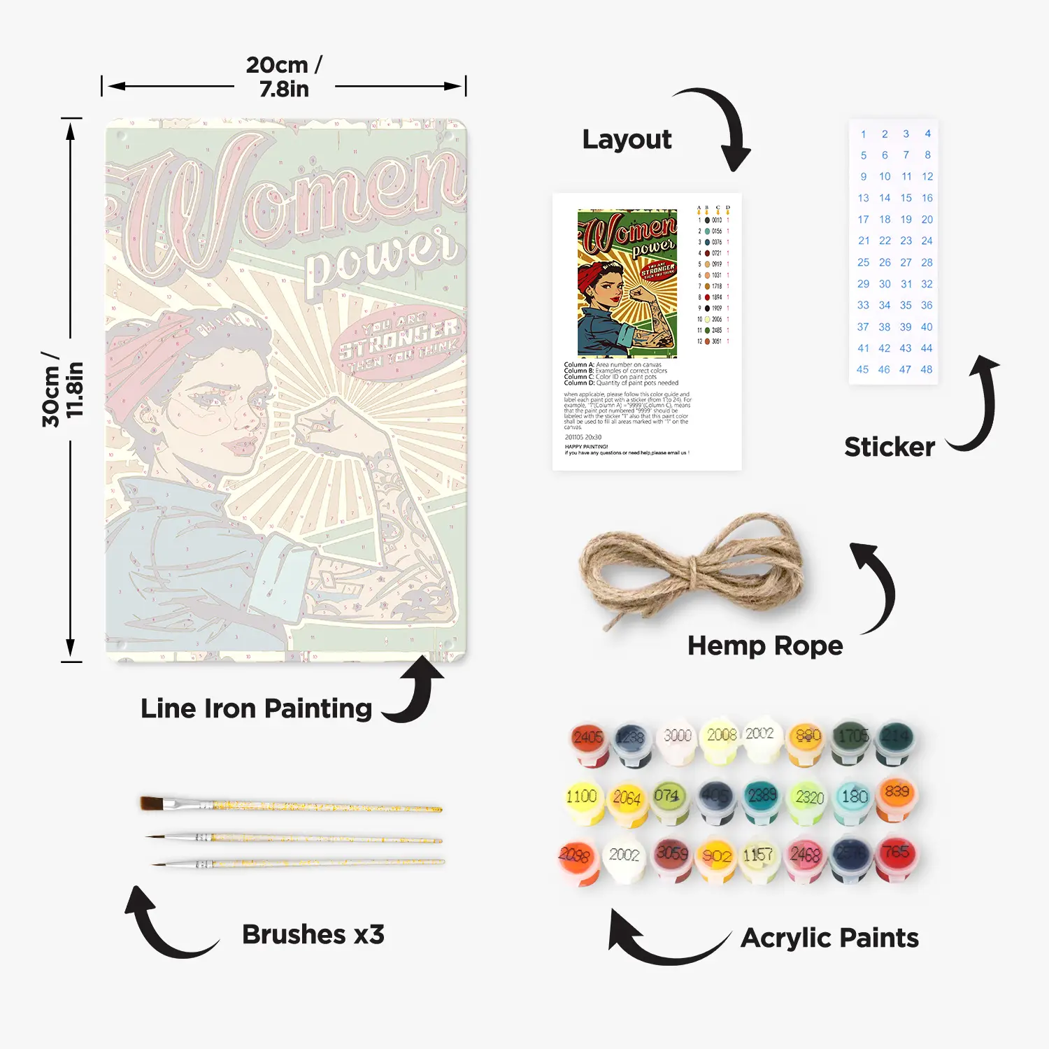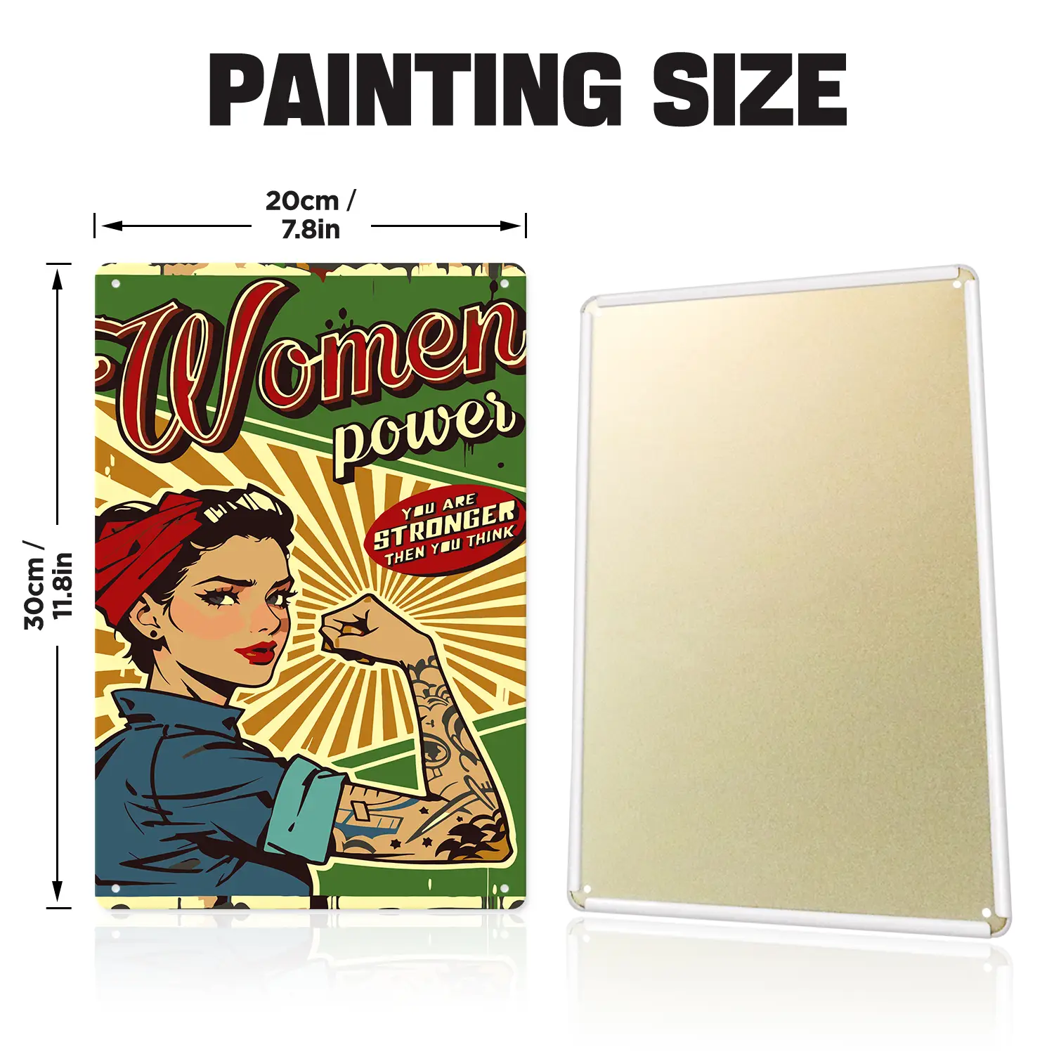 Elevate your space with the Woman Power DIY Metal Poster, a vintage-inspired piece perfect for home or bar decor. This 20x30cm (7.8×11.8 inch) metal poster features rounded corners and edges, adding a sleek touch. The DIY paint-by-numbers design allows you to personalize it with vibrant colors, making it a unique addition to any room. Its durable metal construction ensures long-lasting beauty, while the empowering theme celebrates strength and resilience.